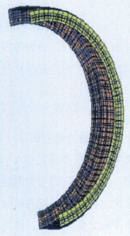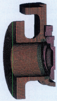 由於幾何及載荷的對稱性,取1/4模型進行有限元建(jiàn)模(mó)。利用強大的前處理軟件HyperMesh建立三維有限(xiàn)元(yuán)模型,模型采用(yòng)SOLID95實體單元和TARGE170、CONTA174接觸單元,為了提高計(jì)算精(jīng)度,手工控製進(jìn)行全六麵體網格劃分,共82456個單元,176324個節點。模型各部件之間的聯係(xì)通過MPC約束,建立接觸對的方法進行處理。建立的有限元模型及兩個接觸(chù)對單(dān)元如圖2、圖3所(suǒ)示。