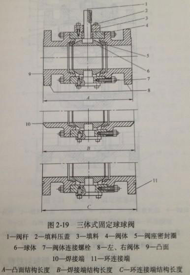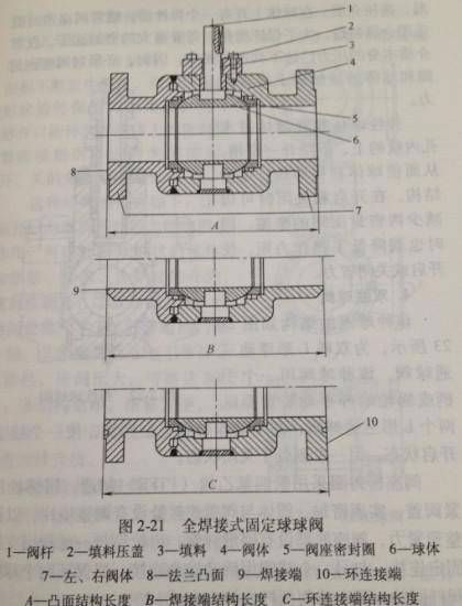 固定球球閥通常設有活動(dòng)閥座密封圈,在介質壓力(lì)的作用下,閥座密封圈能夠產生移位,在閥座密封圈的底部(bù),設在球體上。當有介質壓力(lì)時,介質壓力使閥座密封(fēng)圈緊緊壓在(zài)閥體上。從而保證球閥的密封性能。固定球球閥根據閥體的機構分為(wéi)兩體式固定球球閥,如圖2-18所(suǒ)示;三體式固定球球閥(fá),如(rú)圖2-19所示;上裝式固定球球閥如圖2-20所示;全焊接式固定球球閥,如圖(tú)2-21所示。