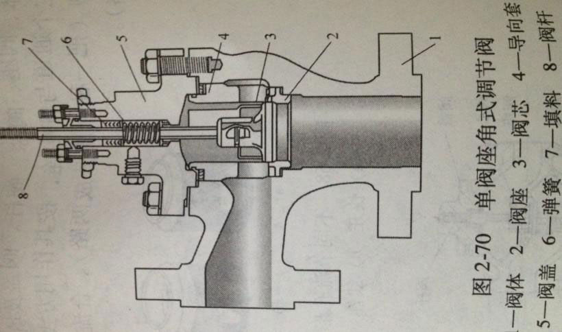 5.角式調節(jiē)閥(fá)  圖2-70所(suǒ)示為單閥座角式調節閥機(jī)構。它(tā)由(yóu)閥體、閥座、閥芯、導(dǎo)向(xiàng)套、閥蓋、彈簧、閥杆和填料等零件組成。圖2-71為角(jiǎo)式套筒(tǒng)調節閥機構。它由背壓噴嘴、噴水進口、籠式消聲器、閥(fá)座、套筒、閥芯(xīn)、閥蓋及閥杆等零件組成。角式套筒調節閥常用於電站的減溫壓係統中,其工作流程為(wéi):閥(fá)芯6的中心設有一通水管,連接閥蓋(gài)7的供水腔(qiāng)至閥座(zuò)4小(xiǎo)麵的出水區。此水(shuǐ)管的上部設有多個節流(liú)孔,節流孔的尺寸(cùn)及編(biān)排方法均(jun1)經過嚴格的就算,噴水經過節流孔和水管直接流向閥體的出口,水管從閥芯6底部延伸至閥座(zuò)外的縮流麵(miàn)處。噴水(shuǐ)點(diǎn)在蒸汽流速多及產生端流的區域,以達(dá)到水(shuǐ)珠(zhū)能很快(kuài)及均勻分散在整(zhěng)個流路中。因此,在閥的下遊壓力恢複時,水立即汽化而達(dá)到所需(xū)的降溫控製。