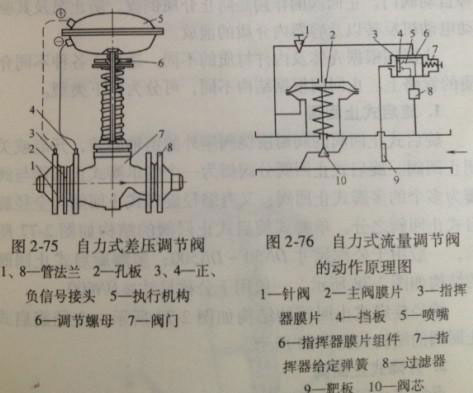 3.自力式壓差調節閥。圖2-75所示為一種自力式壓差調節閥,它由閥門7和具有雙作用的執行機構5組成,通過正、負信號接頭34,接受(shòu)來自孔板2的(de)壓差信(xìn)號,這種調(diào)節(jiē)閥的工作範圍是(shì)可(kě)以用調節(jiē)閥螺母6加以調節的,因為轉動調節螺母6可以改變執行機構中的彈簧力。