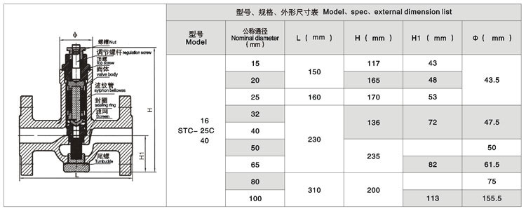可調恒溫式疏水閥主(zhǔ)要外(wài)形尺寸