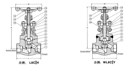 鍛鋼(gāng)截止閥連(lián)接尺寸(mm)和重量(Kg)