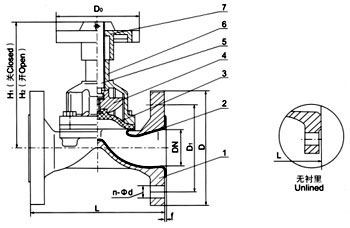 英標隔膜閥主要外(wài)形尺寸和連接尺寸