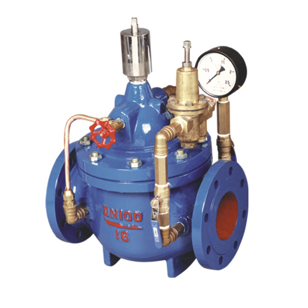 400X流量控製閥由主閥、流量調節閥、針閥、導閥、球閥、微形過濾器和壓力表組成水力控製接(jiē)管係統。利用水力自動操作,控製和調節主閥開度,使通過(guò)主閥的流量保持不變。