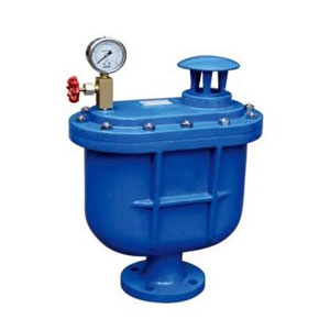 CARX複(fù)合式排氣閥(fá)閥體為圓桶狀,閥門內件包括不鏽鋼浮球、杠杆及閥瓣。本閥安裝在泵出口處或配水管線中,用來排除集積在管(guǎn)中的空氣,以提高管(guǎn)線及水泵的使用效率,當管內一(yī)旦產生(shēng)負(fù)壓時(shí),此閥迅速吸(xī)入外界空氣,以防止管線因負壓而損壞。當管內開始注水時,閥瓣處在開啟的位置,進行大量排氣(qì),當空氣排完時,閥(fá)內充滿水,浮球上升並帶動閥瓣關閉,停止排氣,當管(guǎn)內水正常輸送時,如有少量(liàng)空氣聚集在閥內到相當的程度,閥內水(shuǐ)位下降,此時空氣由小孔排出。當水(shuǐ)泵停止時,管內水(shuǐ)流空或(huò)遇管(guǎn)內產生負壓,此時塞頭迅速(sù)開啟,吸入空氣,確保管線安全。