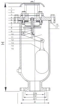 SCAR複(fù)合式汙水排氣閥原理與CARX複合式排氣閥(fá)相同,隻是將結構略作改動,即將閥(fá)體(tǐ)加高,杠杆(gǎn)機構稍微改動(如圖)。這(zhè)樣控(kòng)製(zhì)部分降低,使汙物隻在(zài)閥體下部,不會纏繞上部排氣部分機構,不影響排氣,不致漏水,排氣量與CARX型(xíng)相同。