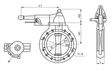 注:1.本蝶閥係列法(fǎ)蘭孔徑(jìng)按GB2555-81,1.0Mpa標準。也可按用戶要求按JIS,DIN,ANSI標準進行製作。
