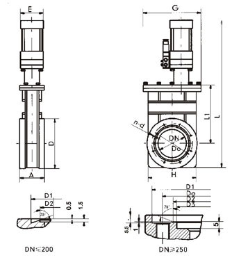高真空插板(bǎn)閥外形及連接尺寸(mm)
