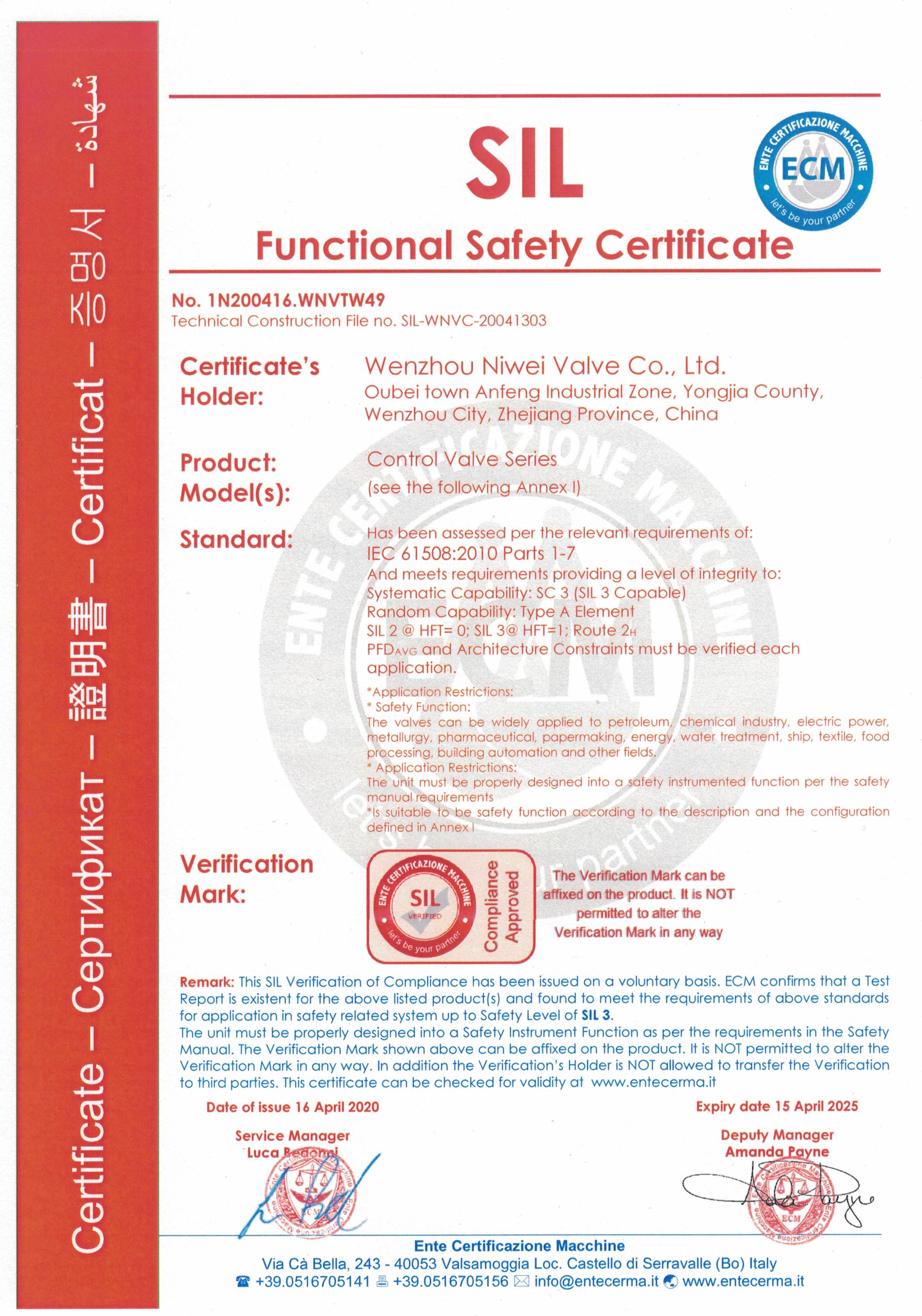 SIL3認證證(zhèng)書